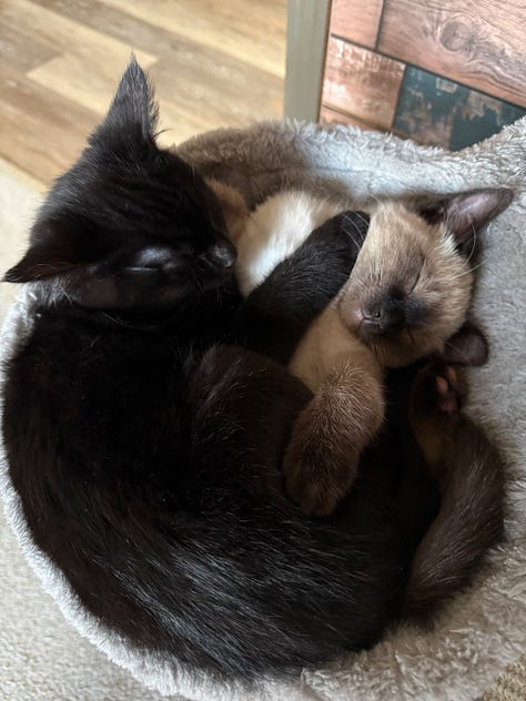 In other news, we now have two cats! They came to us as little kittens and now they are already small cats. Or kitten cats as I like to call them! They are awesome and everyone is having so much fun with them. There are some photos of the boys below including one with our dogs. Most of the photos are of them sleeping because they’re usually zooming around the house!